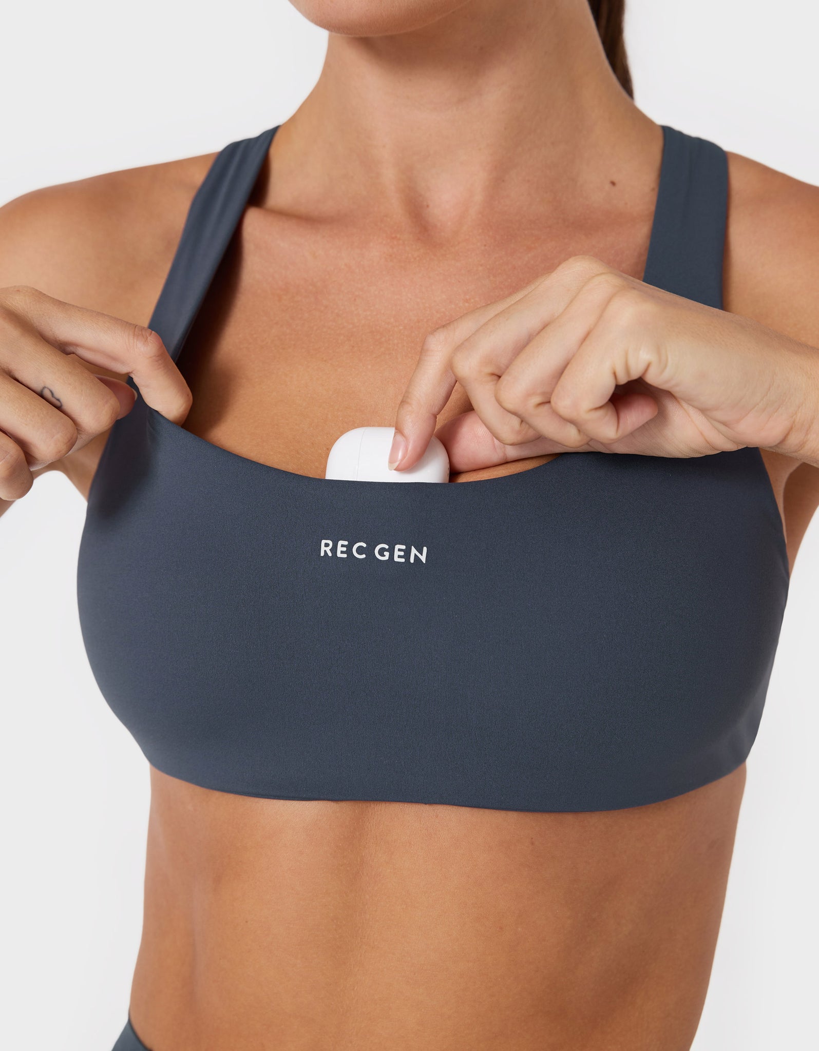 - Hidden front pocket for airpods/keys