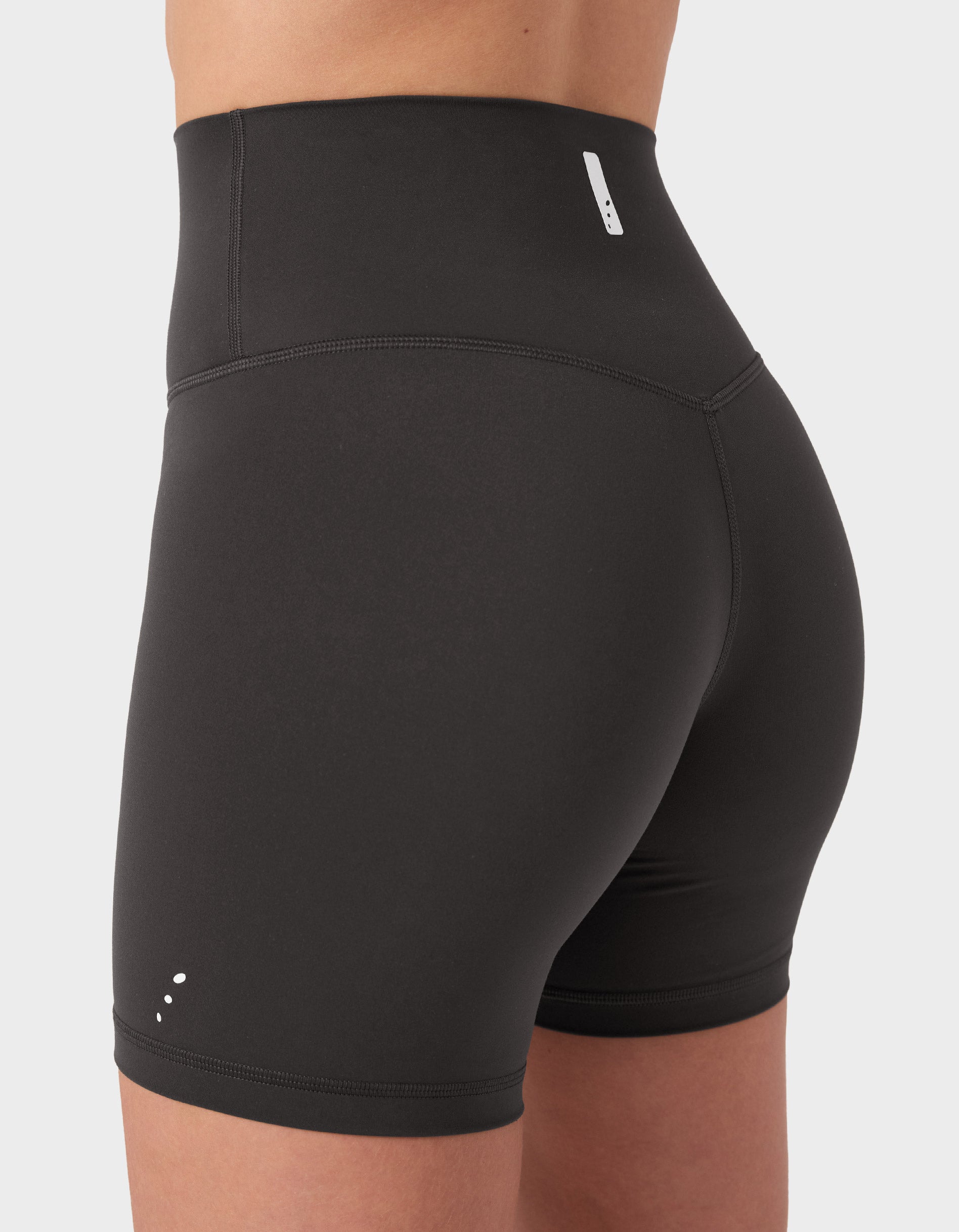 Notes: High-waisted short featuring a V-shaped waist band seam, body contouring fabric with a peached, light-weight barely there feel.