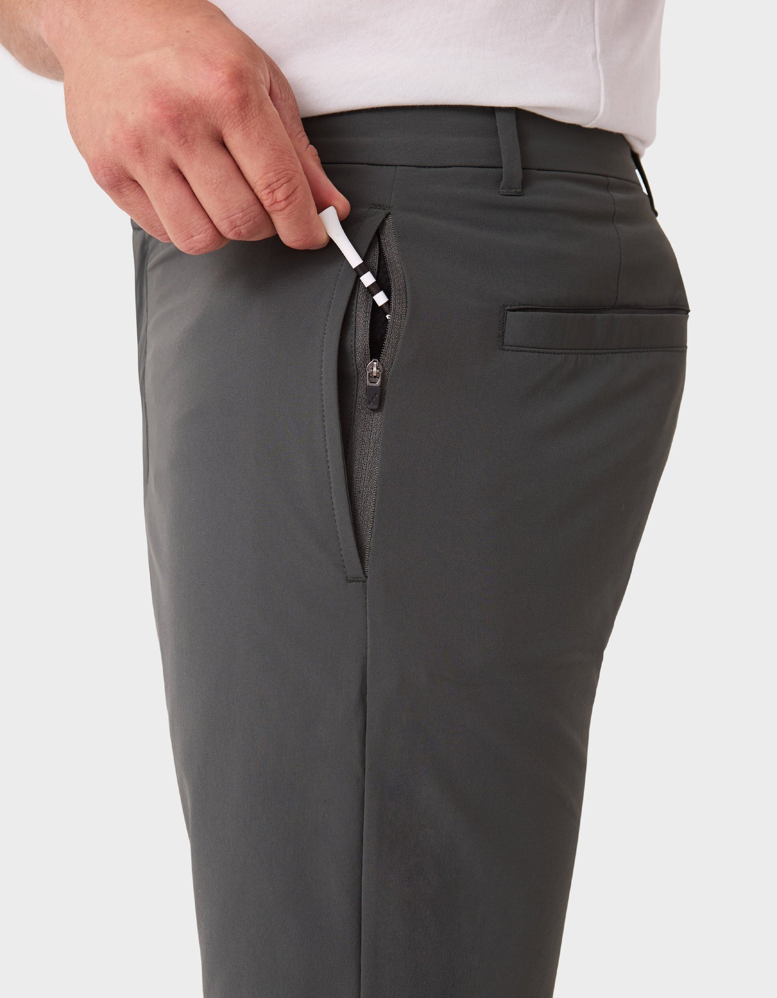 • 2x varied size concealed zipper pockets, opens to side of the body, use to secure media / golf accessories