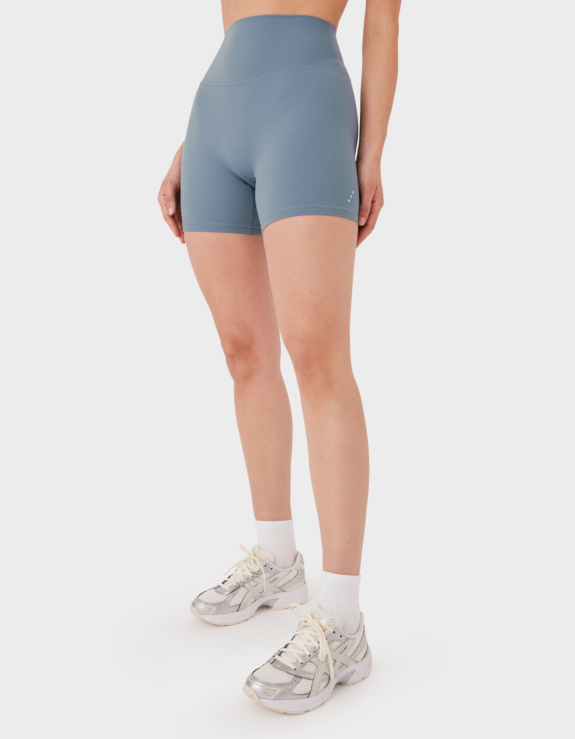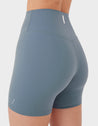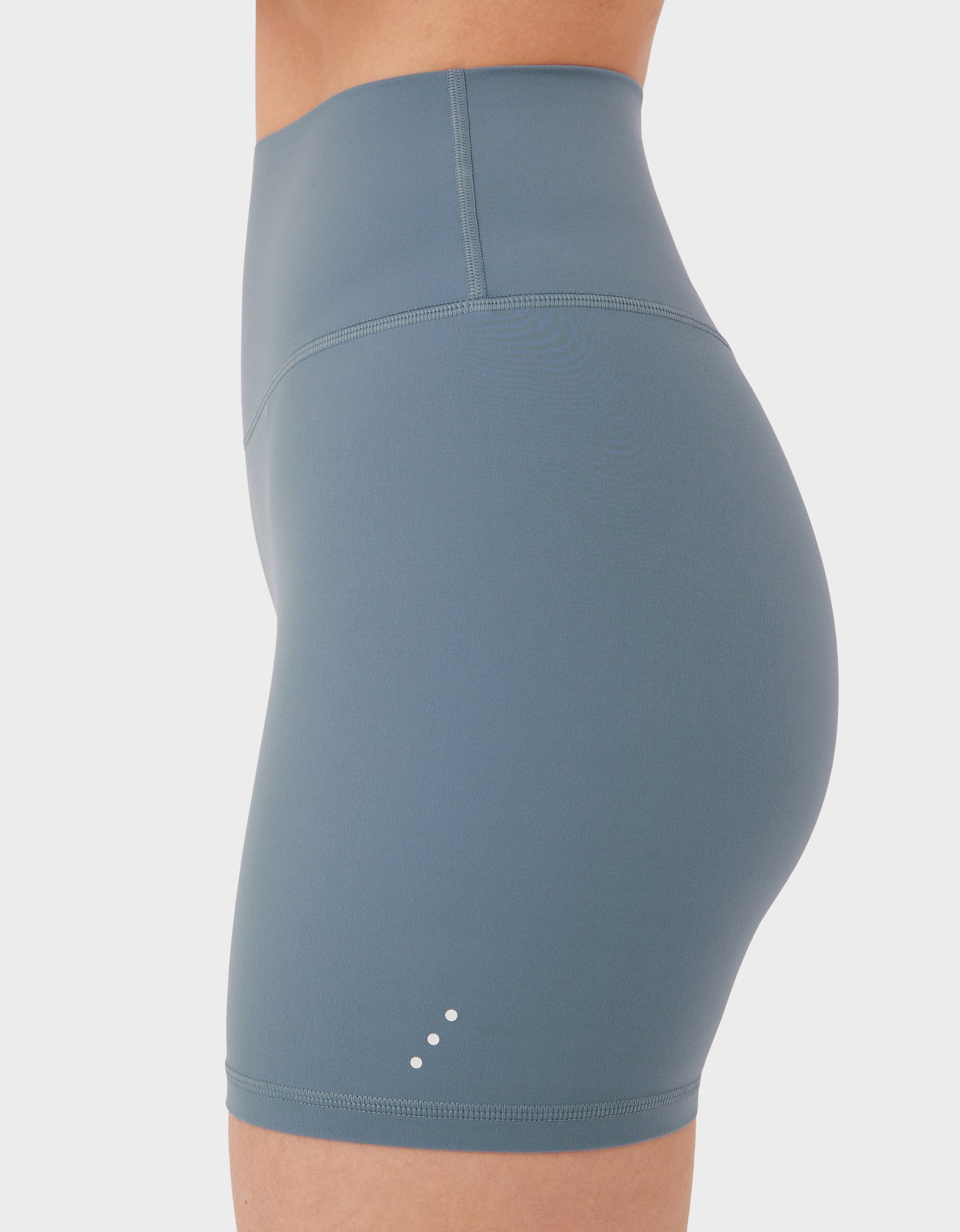 Notes:  High-waisted short featuring a V-shaped waist band seam, body contouring fabric with a peached, light-weight barely there feel.