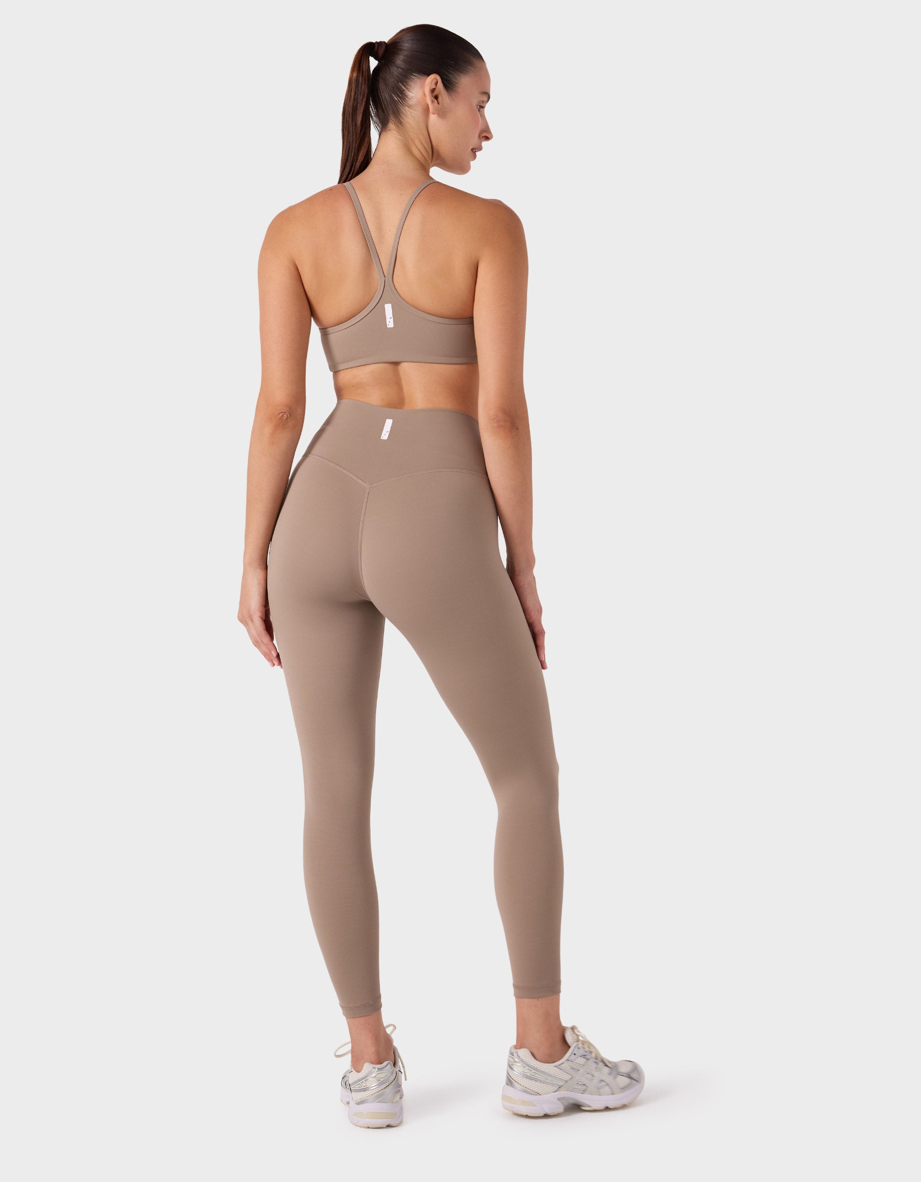 Notes: High-waisted 7/8 legging featuring a V-shaped waist band seam, body contouring fabric with a peached light-weight barely there feel.