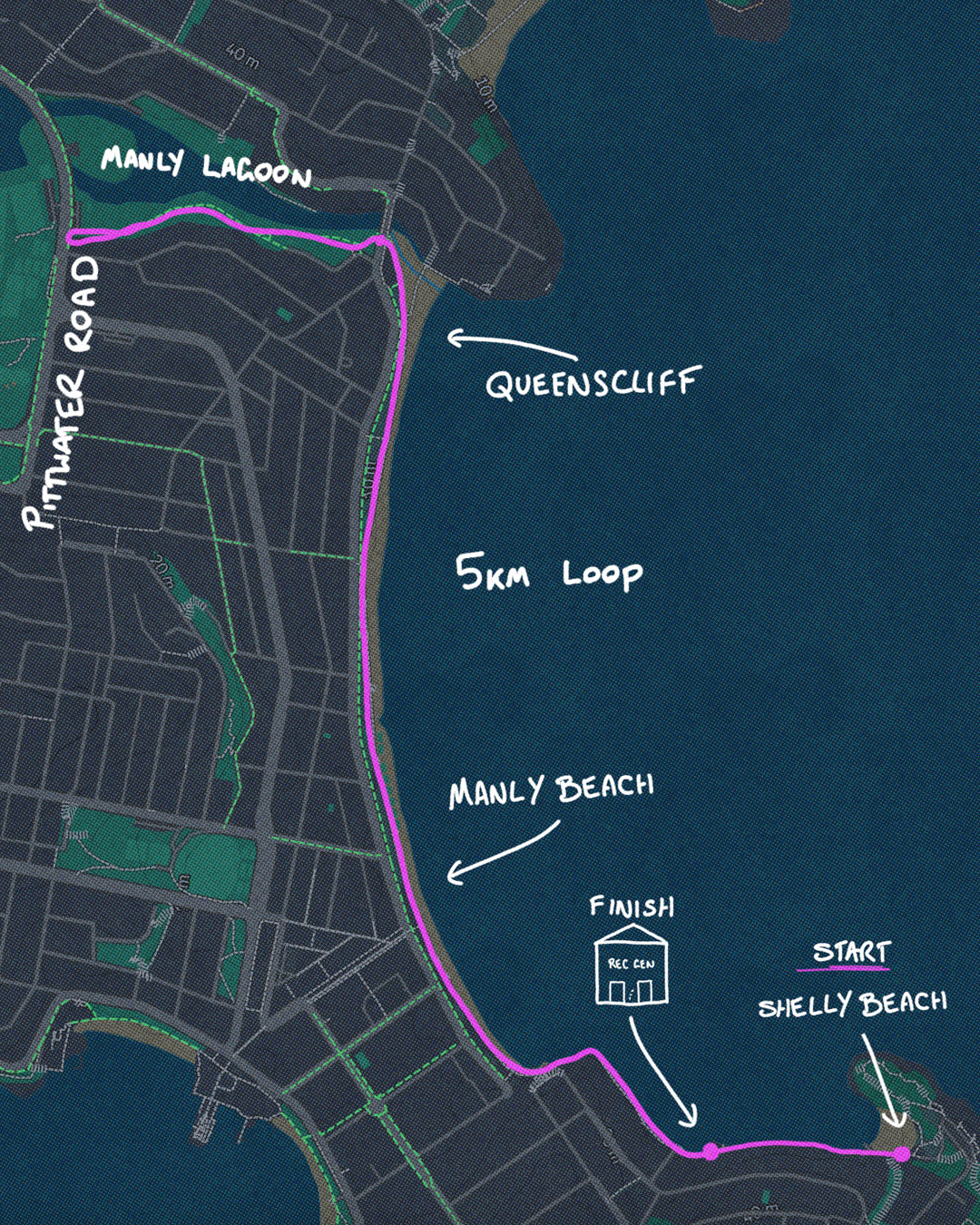 Distance: 5km (along the beachfront, from Shelly Beach to Pittwater Road and back to the REC GEN store - 5 Marine Parade, Manly NSW 2095)