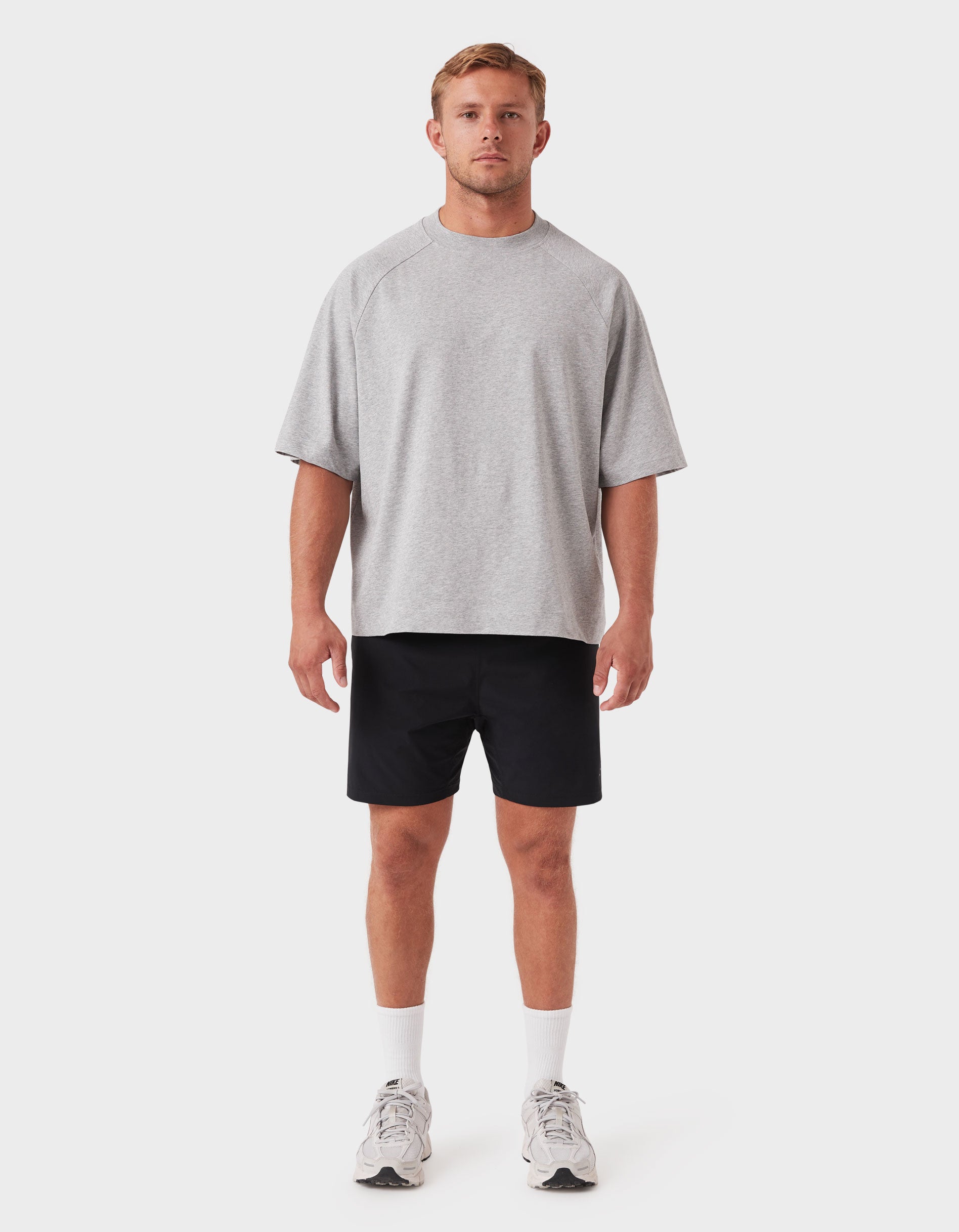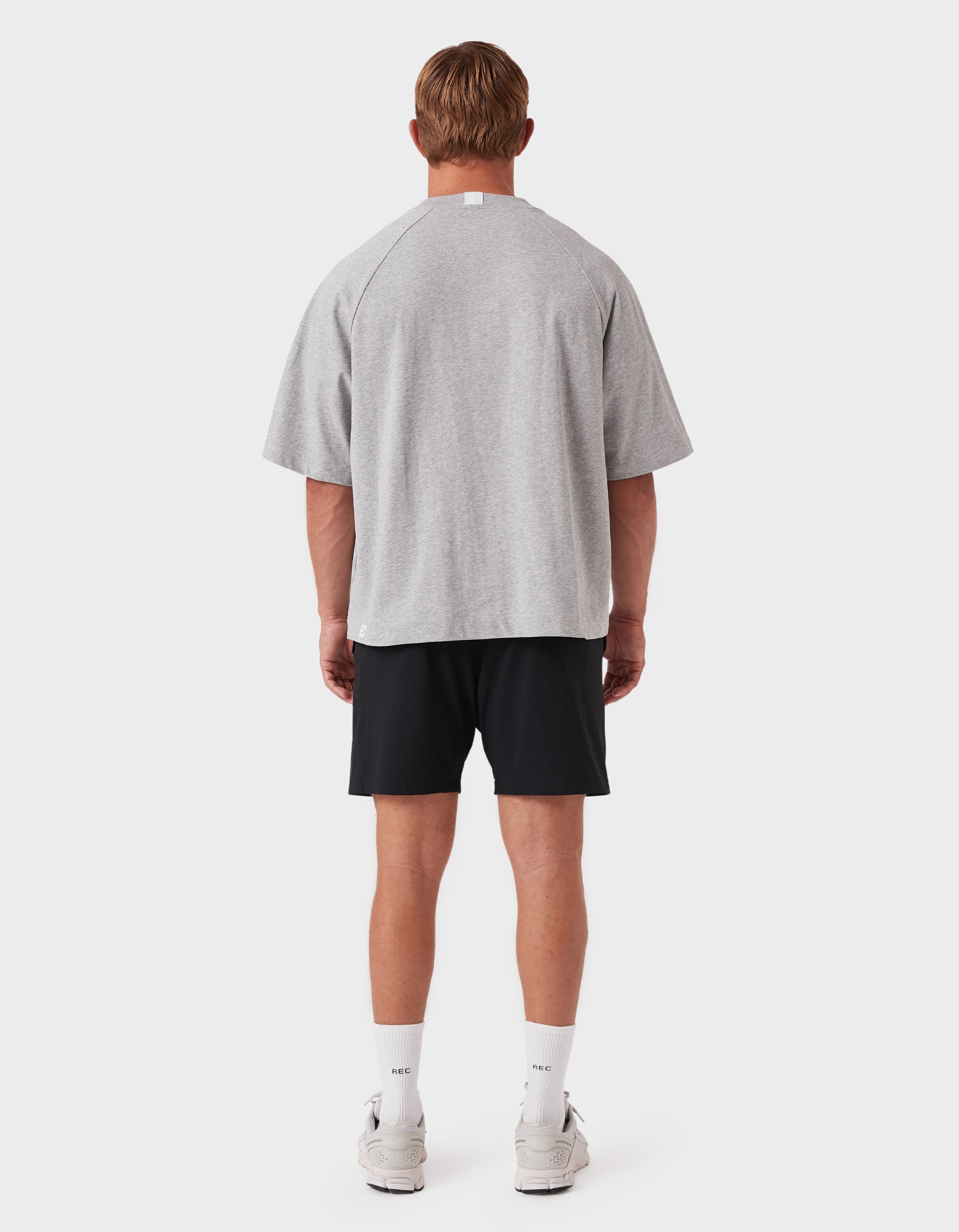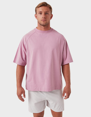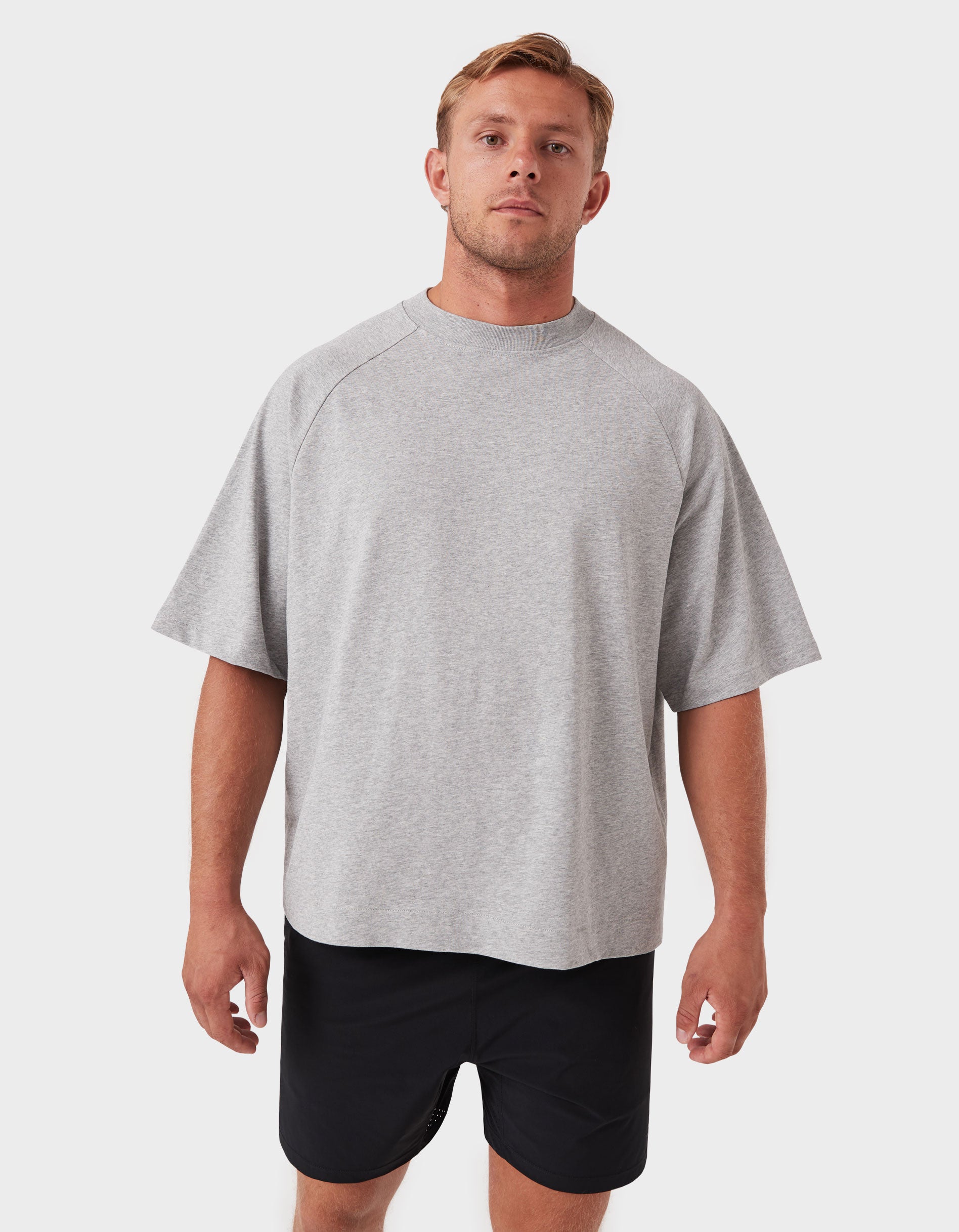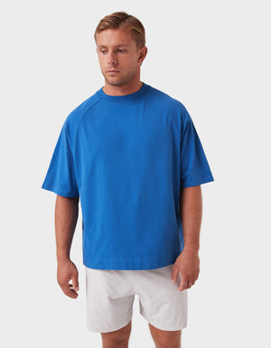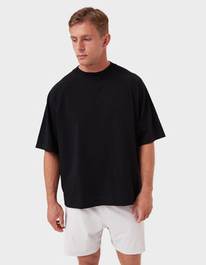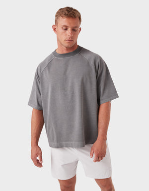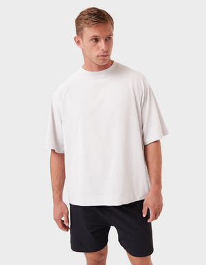 Notes: A premium blend of pure long-staple cotton and recycled cotton for a sustainable everyday essential. Oversized raglan tee with a slightly cropped, boxy fit and chunky neckline.
