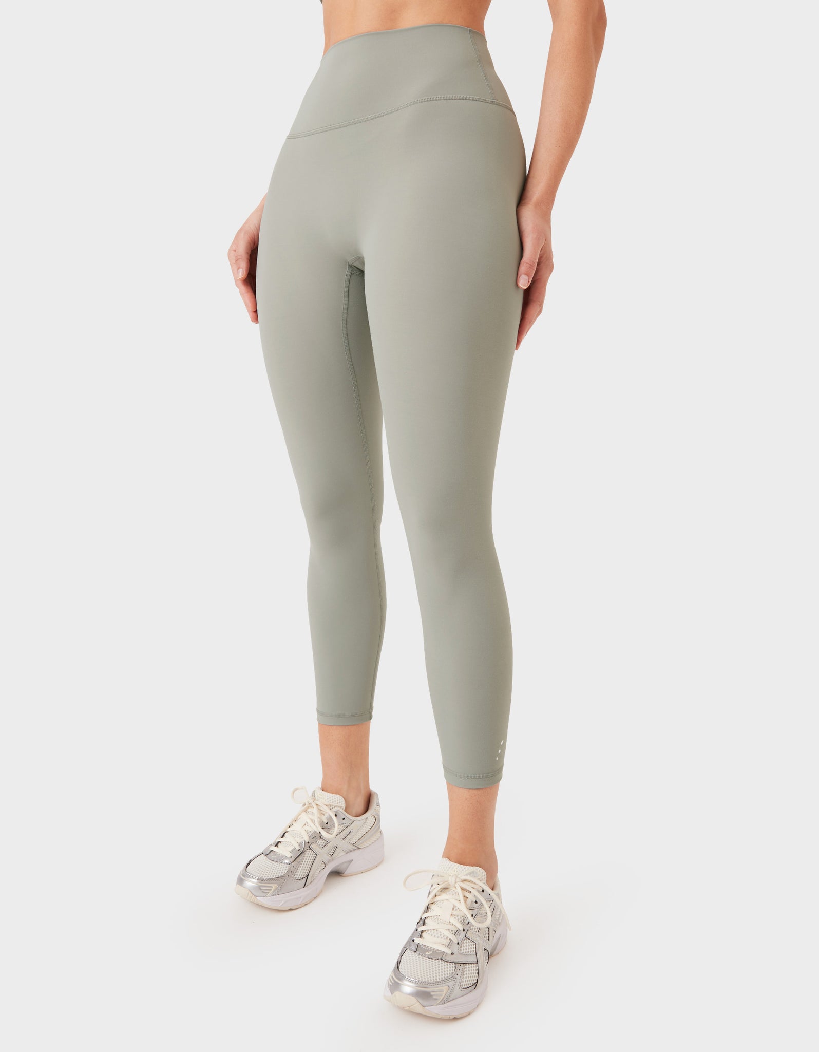 Notes:  High-waisted 7/8 legging featuring a V-shaped waist band seam, body contouring fabric with an extra peached light-weight barely there feel.