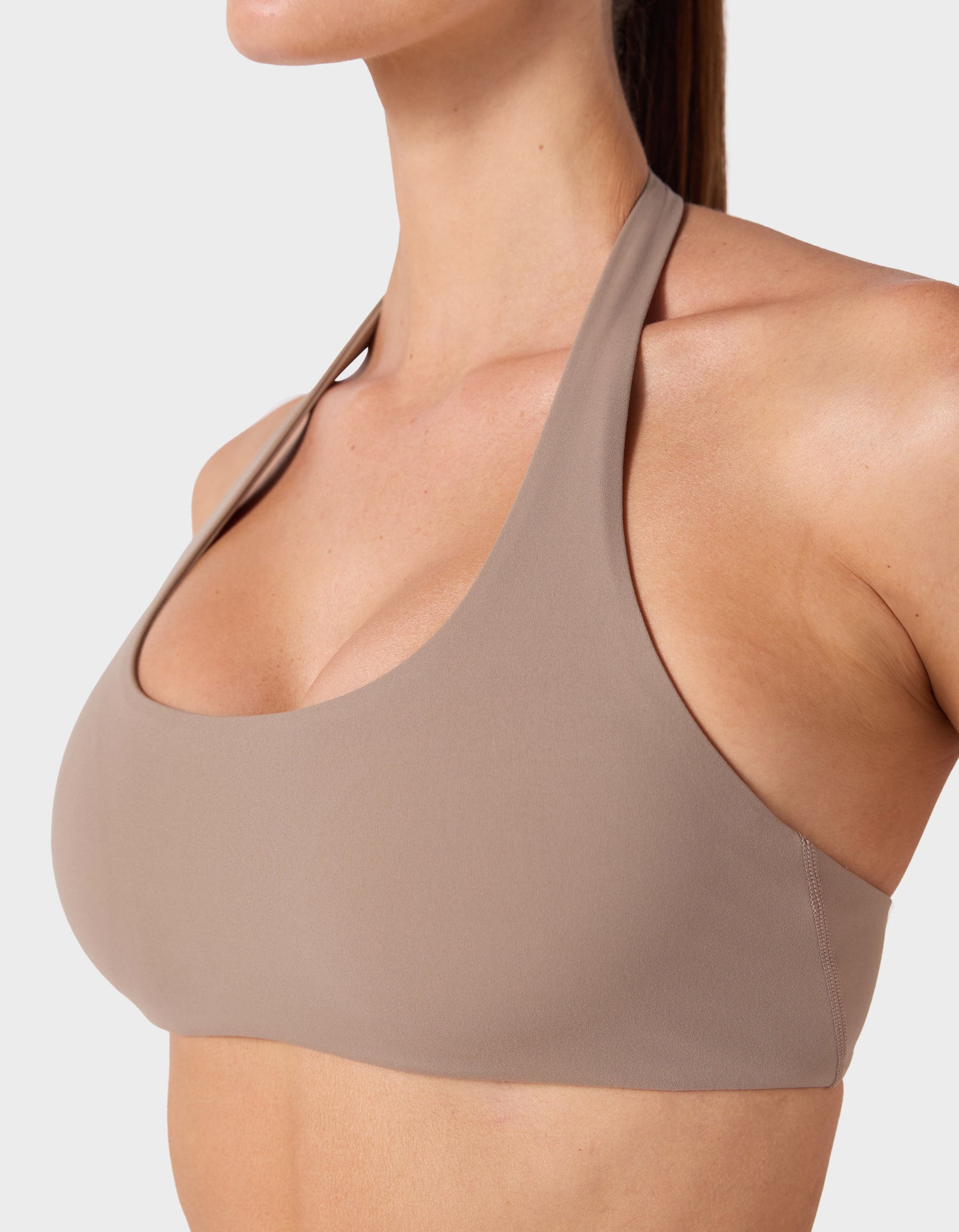 Notes:  A minimalistic sculpted halter bra with body contouring fabric with a peached light-weight barely there feel.