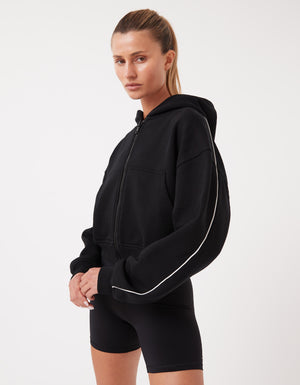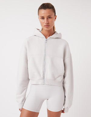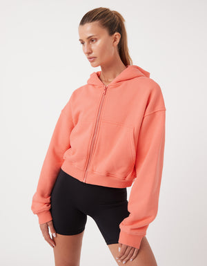 Notes: The ultimate in cozy fleece, super oversized zip-through with cropped rib hem
